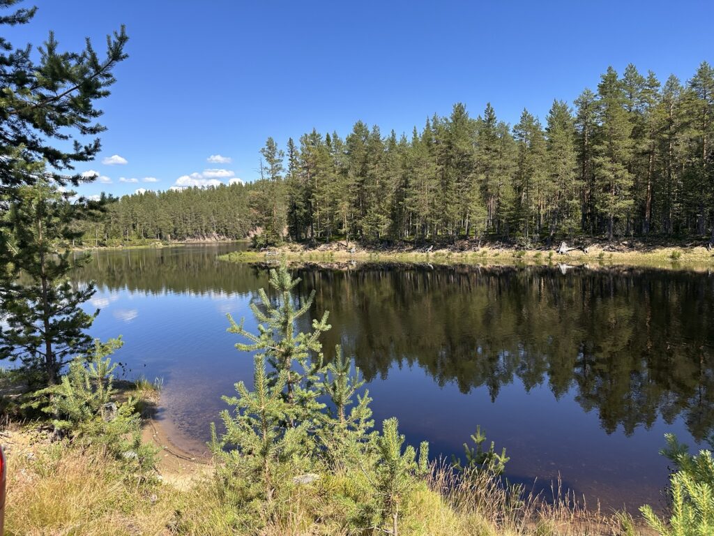 En bit utanför Särna hittar du denna lägerplats, gott om numrerade platser och har du tur som vi hade så får du plats vid vattnet direkt. När vi var där så låg temperaturen på omkring 30-32 grader varje dag, så man ska inte klaga.