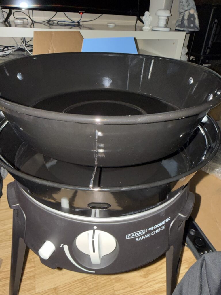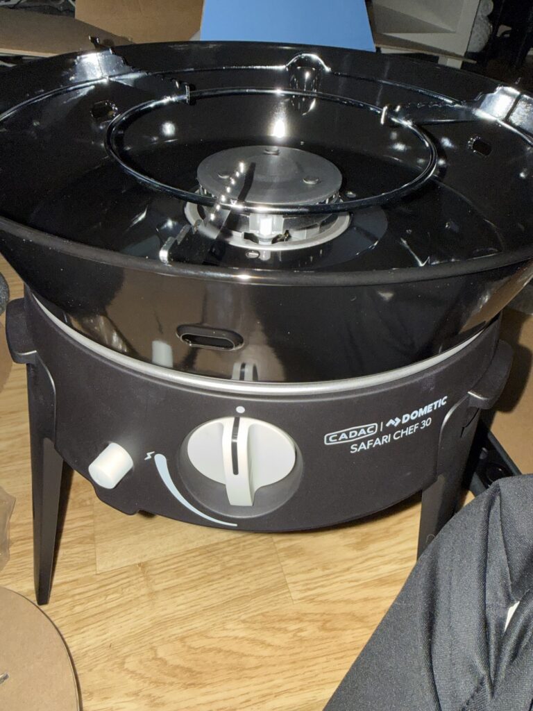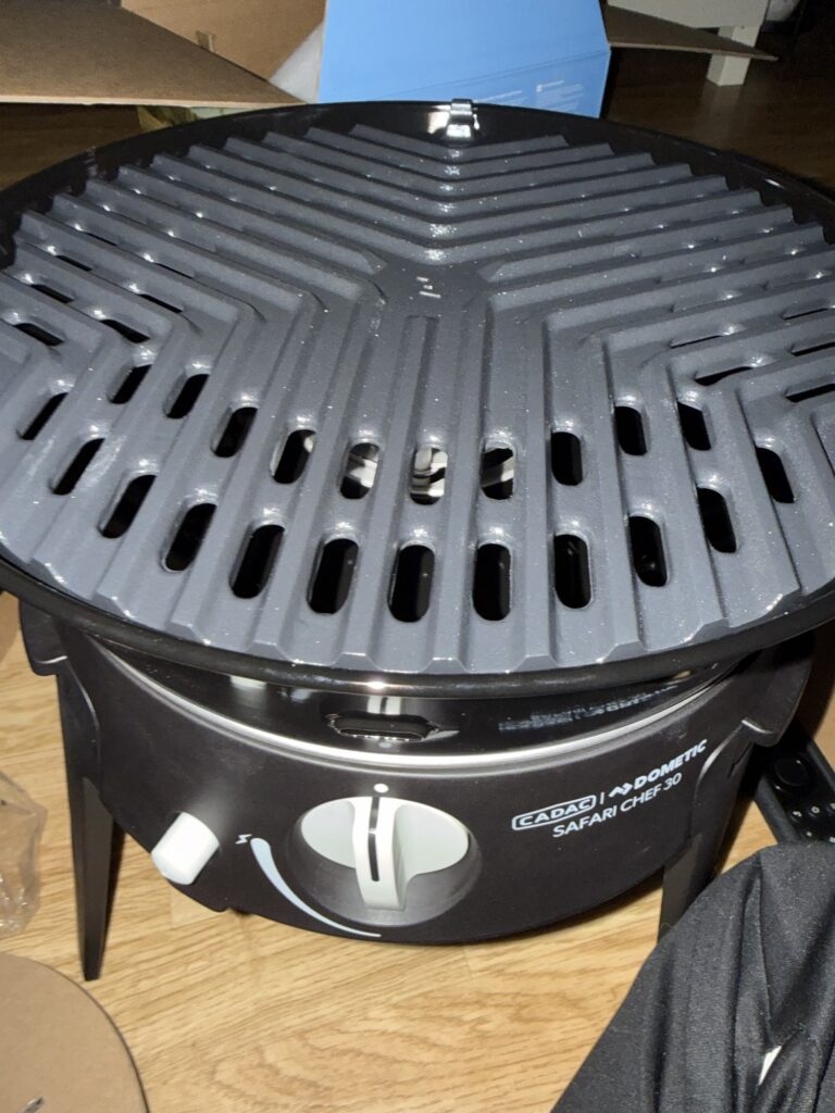 Dometic Cadac Safari Chef 30 LP phu långt namn, men den heter så varianten som fungerar med gasolflaskor. Heter den HP på slutet så kan du sätta i en liten gasoltub under. Men eftersom jag har snabbkoppling för grillen i min gasolkoffert så valde jag LP modellen.