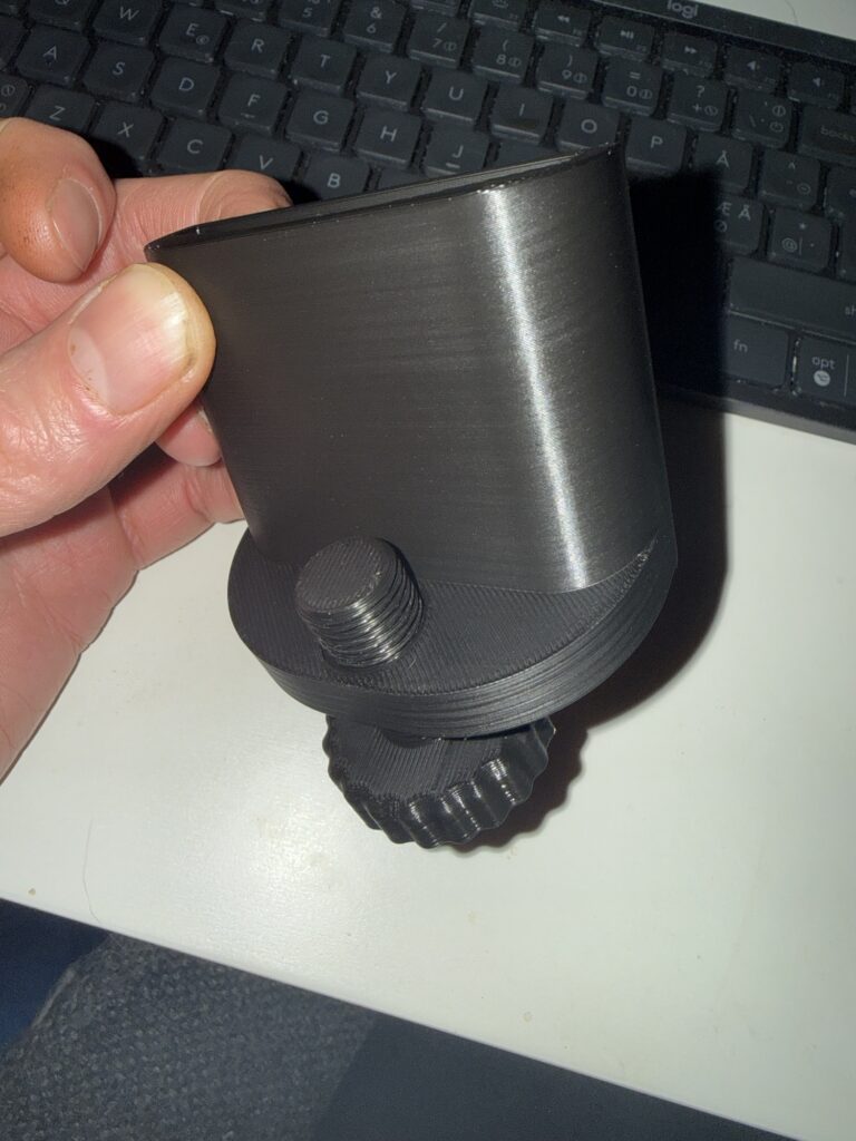 Fettuppsamlaren fungerar även som ett vindskydd och rengöring gör man enkelt genom bara tvål och vatten. Ifall man står i lutning så finns det justerbara fötter att 3D printa ut som Speddy99 har gjort och dom finns att ladda ner här.